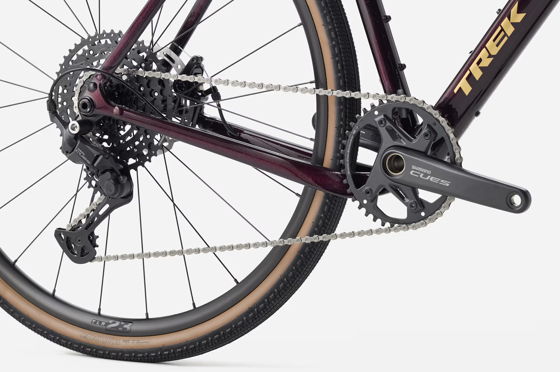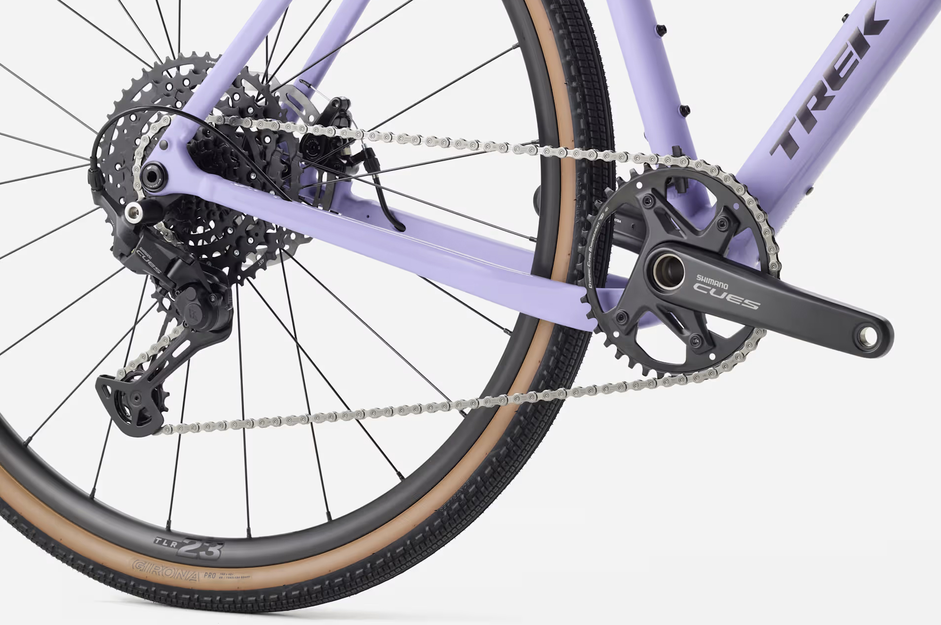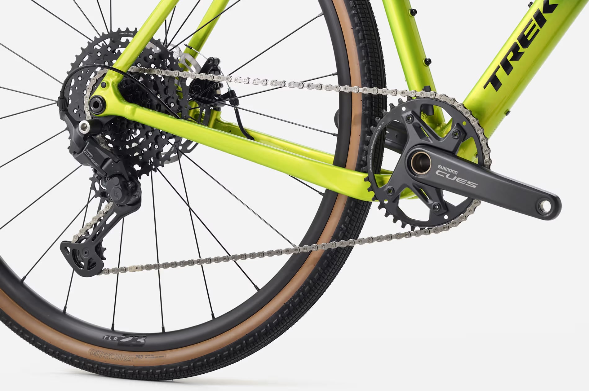 Khung nhôm Alpha Series 300 đi kèm với phuộc Carbon, cho tuỳ chọn lốp/vỏ xe rộng đến 50 mm. Xe được trang bị bộ truyền động Shimano CUES 10 tốc độ, phanh đĩa cơ, bánh xe Bontrager Paradigm cùng lốp Bontrager Girona Pro Tubeless Ready. Ngoài ra, xe còn có sẵn các ngàm gắn túi, baga và phụ kiện – sẵn sàng cho mọi hành trình phiêu lưu.