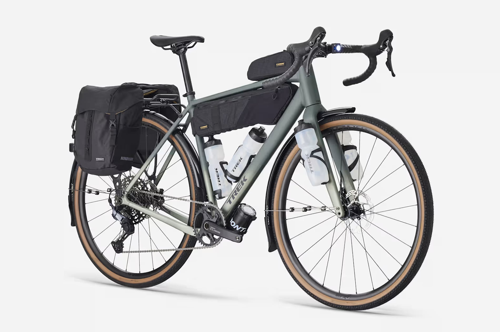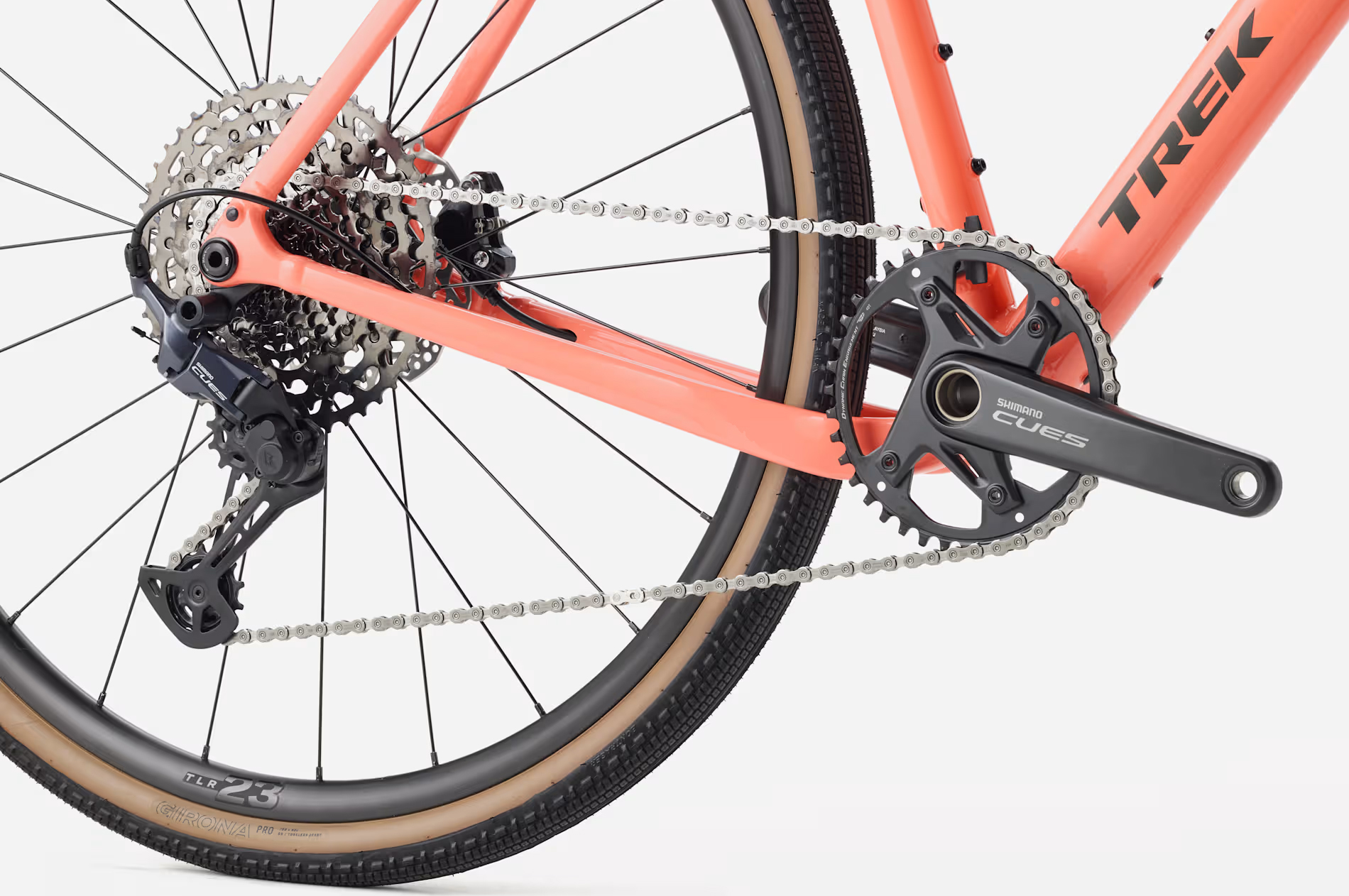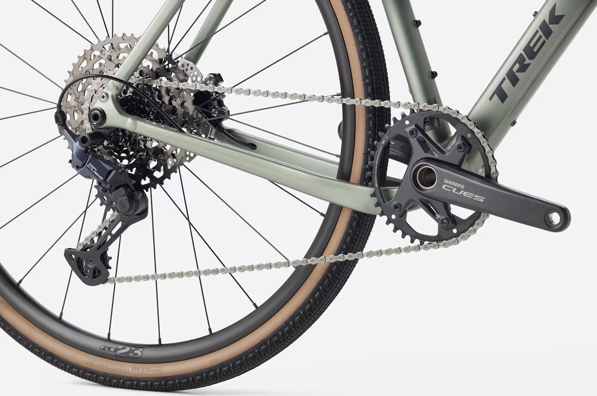 Khung nhôm Alpha Series 300 đi kèm với phuộc Carbon, cho tuỳ chọn lốp/vỏ xe rộng đến 50 mm. Xe được trang bị bộ truyền động Shimano CUES 11 tốc độ, phanh dĩa dầu, bánh xe Bontrager Paradigm cùng lốp Bontrager Girona Pro Tubeless Ready. Ngoài ra, xe còn có sẵn các ngàm gắn túi, baga và phụ kiện – sẵn sàng cho mọi hành trình phiêu lưu.