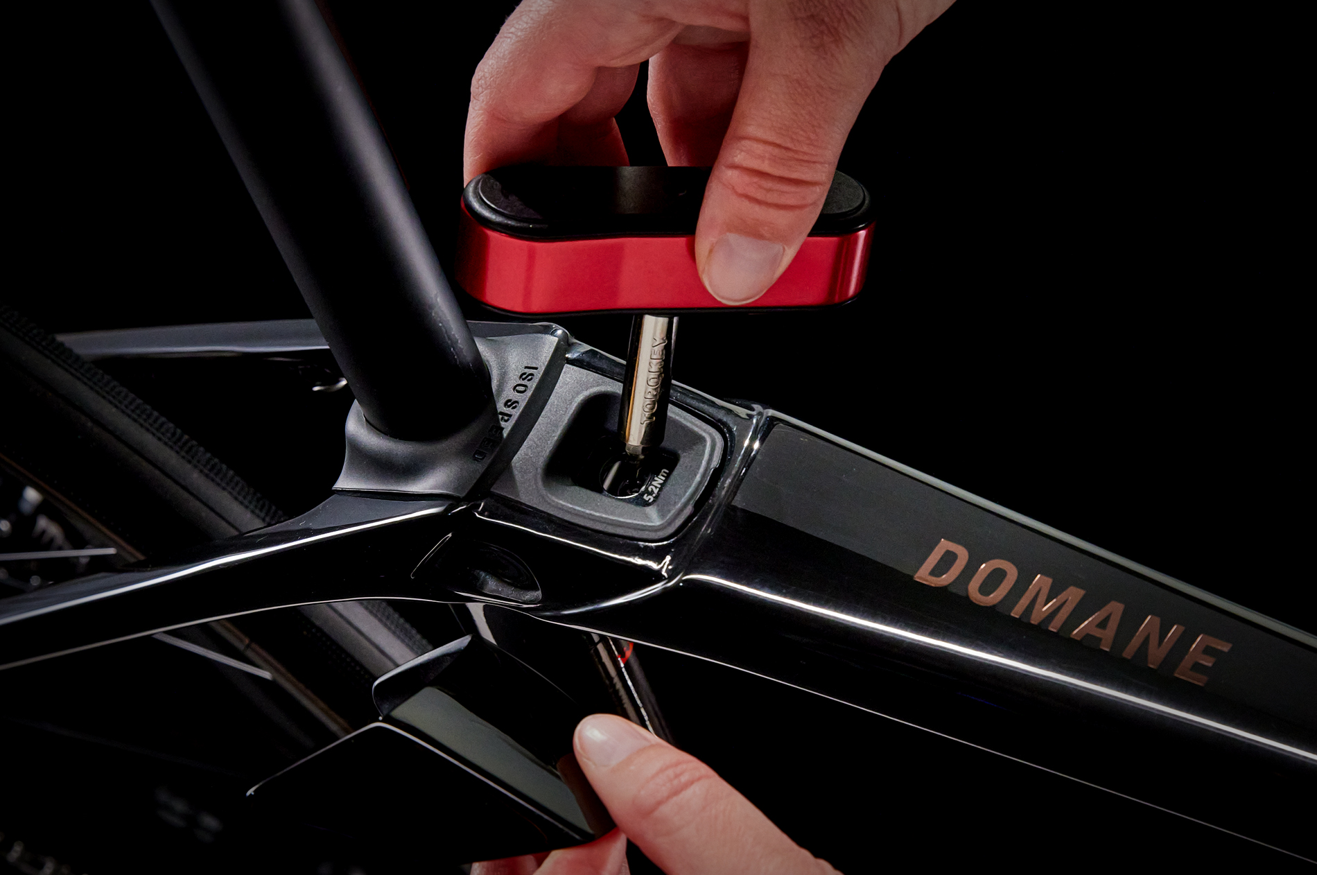 Domane SL carbon, tapered carbon steerer, internal brake routing, mudguard mounts, flat-mount disc, 12x100 mm thru axle