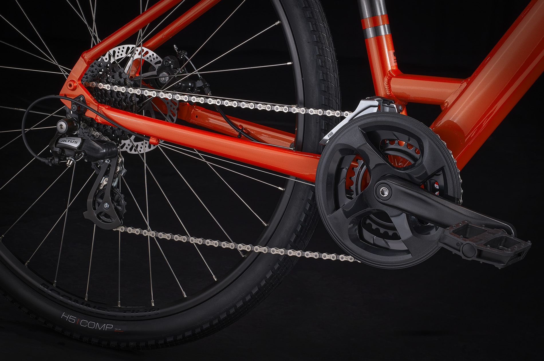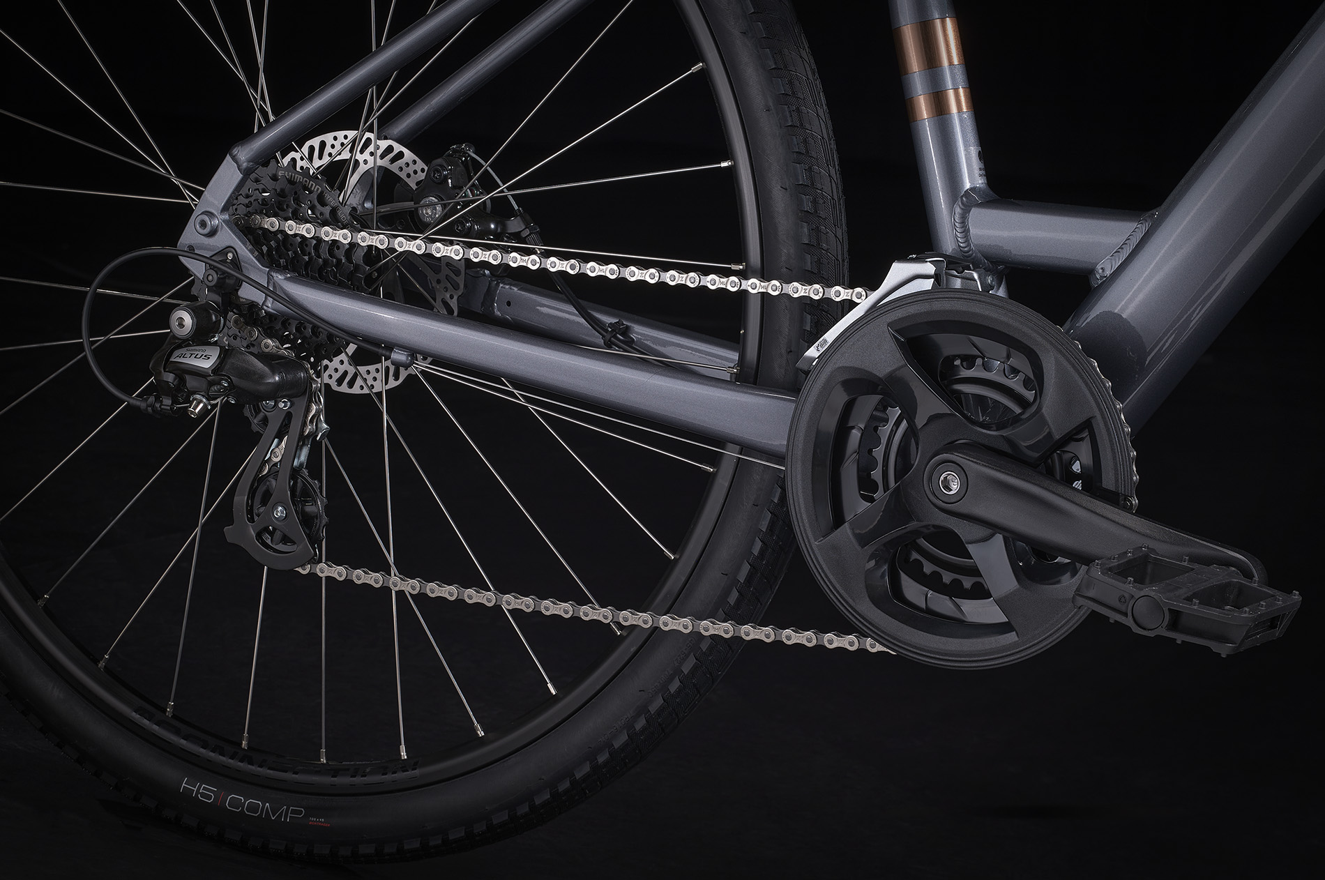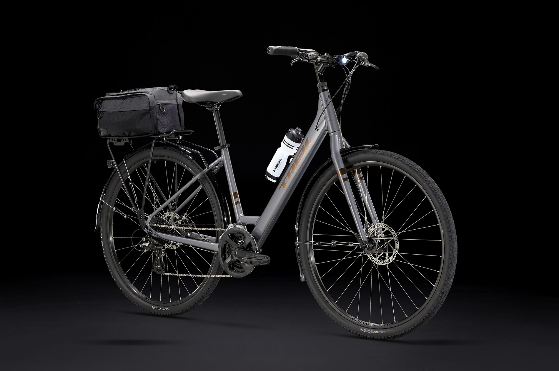 Một khung hợp kim nhôm Alpha Aluminum nhẹ nhàng và bền bỉ, với thiết kế khung võng xuống để dễ lên xuống xe, kèm theo nhiều ngàm phụ kiện, từ vè xe đến baga sau. Hệ thống truyền động Shimano 21 tốc độ để bạn không bao giờ phải quá gắng sức khi leo dốc, hệ thống thắng đĩa mạnh mẽ, bộ cổ điều chỉnh được góc độ, một yên xe Bontrager rộng rãi êm ái, vỏ xe cỡ lớn 45c bám đường và cấu trúc hình học giúp ngồi thẳng lưng để tạo ra trải nghiệm đạp xe thoải mái hơn bao giờ hết.